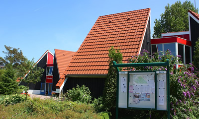 De receptie staat tot uw beschikking zodat u optimaal kunt genieten van alles wat het vakantiepark en de omgeving te bieden heeft. Een wasruimte met wasmachine en droger bevinden zich ook in het receptiegebouw. Naast de wasruimte is er een kleine kamer met een kleine afhaal- en wisselbibliotheek en sleutelkastjes voor de gasten.